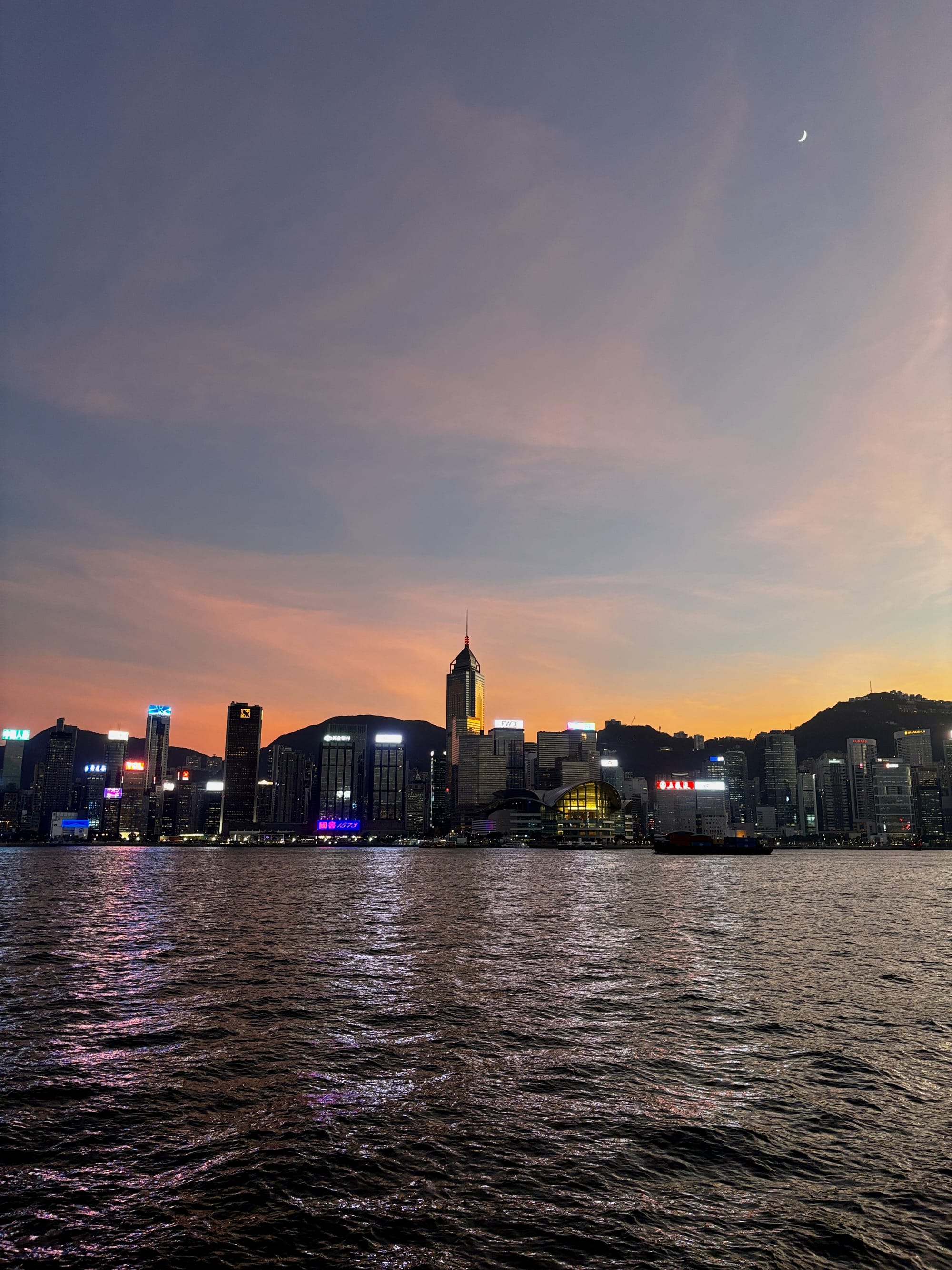 - The crescent Moon gracing the Hong Kong skyline, making some humans happy in the process.